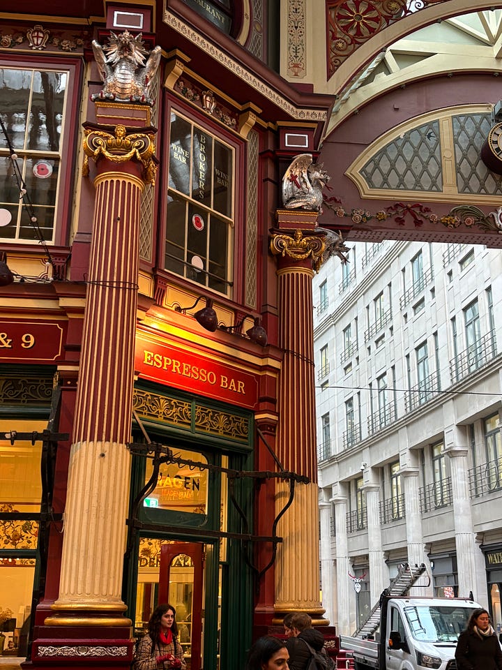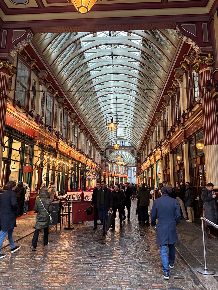 It was cold and rainy—not unusual for London in January, but also not very pleasant for meandering. My first stop was Leadenhall Market, a covered market dating back to the 14th century. It’s also the site of Diagon Alley for Harry Potter fans, but I planned to wander the boutiques and shops promised on the website. While the architecture was stunning, most of the covered market is eateries, not shops suitable for wandering. So after a mediocre bowl of Korean bibimbap, I headed back out into the rain—with several hours left before I could go to bed in good conscience.
