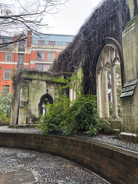 I always wear a mask on airplanes (I know the air is supposed to be cleaner than anywhere else I usually breathe1, but have you ever been on a flight that didn’t have multiple people sneezing and coughing?), but somewhere between Grand Rapids and London Heathrow, the germs got me anyway. I barely slept and by the time I landed, my head was full of gunk and my throat was scratchy. I got some breakfast at a Café Nero and took the Elizabeth Line into Paddington Station. There is a crazy little hotel2 that I’ve stayed in before and by some miracle, my room was ready when I got there at 10 AM. I slept for an hour, then showered and headed out, determined to make the most of the day.
