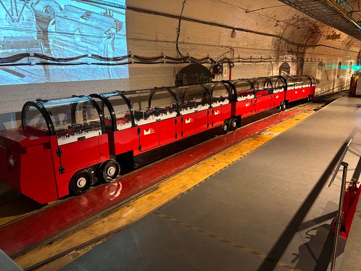 I did not set an alarm before turning off the light for the night. When I next saw the clock at 10:15 Thursday morning, I realized I had missed breakfast and didn’t have much time before heading out to Woking for the meetings that were my reason for being there. I checked out of my room, grabbed a tea and pastry from Sainsbury and made a quick detour to the London Postal Museum. What a delightful gem! My children would have loved it ten years ago, and I loved watching the moms there with their children enjoying the very hands-on exhibits. Once again, the impact of the Wars featured prominently in the exhibits, and I appreciated reading several family stories told through the letters they wrote. But the best part of the museum by far was riding the Mail Rail: the narrow gauge underground driverless train system that ran from 1927 until 2003. It was designed to bypass London street traffic and move mail around the city more efficiently. At its height, it carried 4 million pieces of post a day, including freshly hunted game, as long as it had a neck label and “no liquid was likely to exude.” As with art museums, I love a small well-curated museum, and this one was well worth the detour. My only critique is that the gift shop did not carry any t-shirts, which my train-obsessed third-born would have loved.